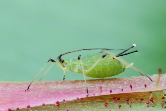 Black Bean Aphid Colony Close-up. Blackfly or Aphis Fabae Garden Parasite Insect Pest Macro