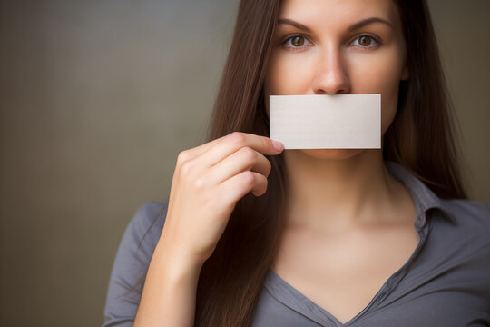 Mouth of a woman covered with a turquoise strip on a white background symbolizing censorship.