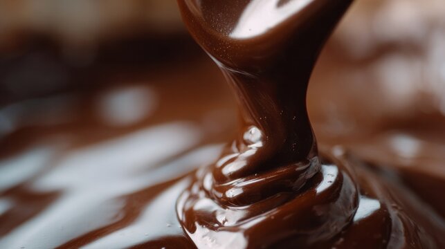 Molten chocolate cascade oozes decadence, invoking aphrodisiac Valentine's indulgence and whimsical International Chocolate Day celebrations