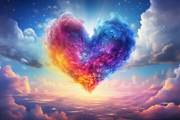 rainbow love apk colorful heart shaped clouds sky wallpapers, in the style of psychedelic artwork, digitally manipulated images, dreamy and romantic compositions