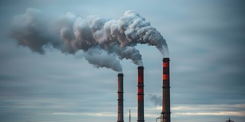 Mitigating Air Pollution Industrial Smokestacks at a Power Plant. Concept Environmental Solutions, Industry Regulation, Green Technologies, Air Quality Monitoring, Pollution Control