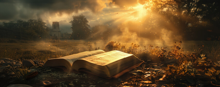 Vintage black leather Holy Bible with Apocrypha inscribed in gold displayed on a crimson lectern, bible, lectern, Holy Bible, vintage, Apocrypha, gold inscription