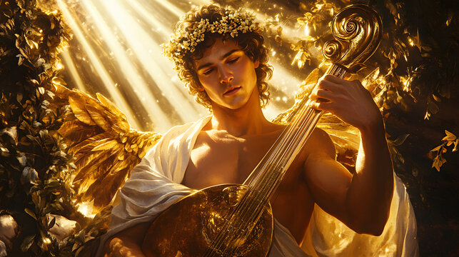 Apollo the god of sun captured in radiant oil painting style artwork. Olympian Pantheon. Illustration