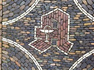 A sign for an apotheke German pharmacy translated as pharmacy drug store is seen on the cobblestone ground, symbolizing the search for drugs and medications