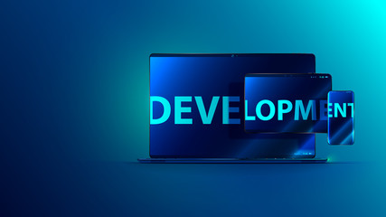Scene depicting a team of developers working on mobile app development, coding for iOS or Android platforms