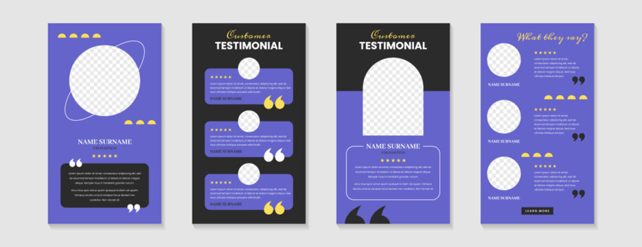 Customer reviews purposes blue onboarding mobile app screen. Walkthrough 4 steps editable graphic instructions with linear concepts. UI, UX, GUI template. Myriad Pro-Bold, Regular fonts used