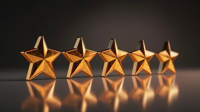 Laptop Computer on the Table with Five Golden Stars – Excellence in Technology and Performance