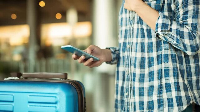 Hand holding phone mockup on city street for app promotion and ui design advertisement template
