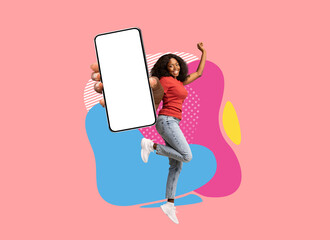 Silhouette of a person presenting a smartphone with a splash and a screen with audience isolated on transparent background