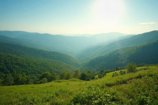 Appalachian Plateau In Spring With Rolling Green Hills And Bright Skies