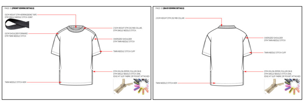 Short Sleeve Crew Neck Drop Shoulder T-shirt Fashion Design Technical Tech Pack.