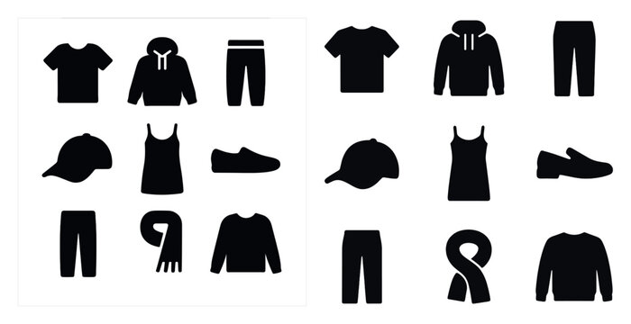 Clothing icons set – silhouette, fashion, apparel symbols for design