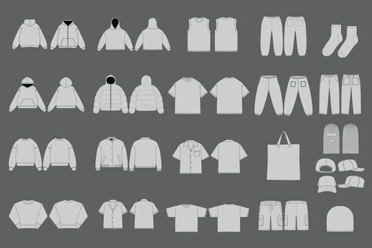 Set of Clothing Mockup Template - Apparel Vector Mockups Bundle Streetwear Tech Pack Template Streetwear Mockups Clothing Brand Fashion Techpack