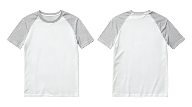 Plain Light Gray Sleeve and White Body Raglan T-Shirt Mockup, Front and Back View, High-Quality Digital Rendering for Apparel Design Presentation on Transparent Background