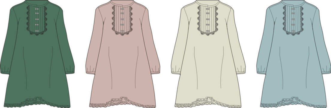 Fashionable Women's Dresses Displayed in Four Distinct Color Variations