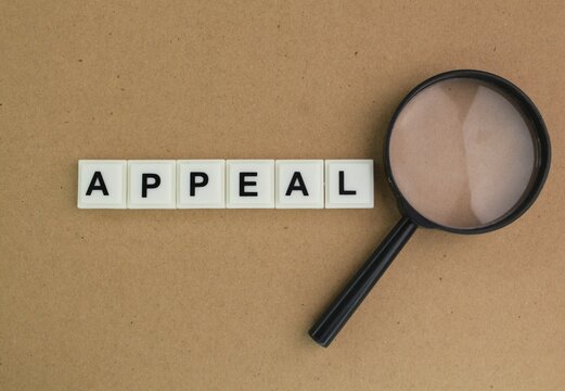Close-up of a hand filling out a Notice of Appeal document on a desk.