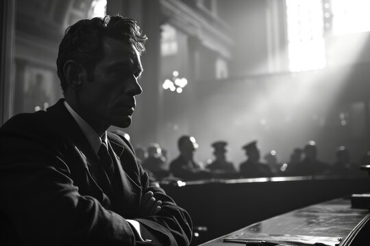 A black and white dramatic portrayal of the court