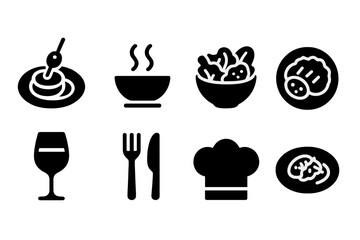 Three-Course Meal Icons. Three-course meal. Filled icon set of three-course meal: appetizer plate, soup bowl,
