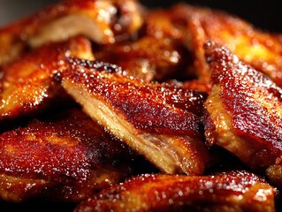A mouthwatering closeup of perfectly slowcooked tender shredded meat glistening with rich savory sauce and ready to be served highlighting the delicious texture and culinary appeal of a hearty meal.