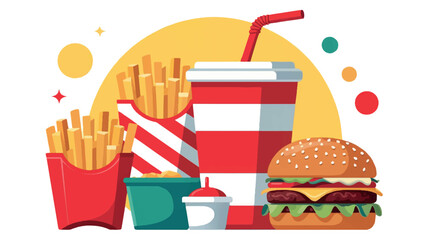Colorful fast food pattern featuring burgers pizza and fries for marketing and design