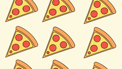 Seamless Pattern of Pepperoni Pizza Slices on a Light Background Delicious Italian Food for Restaurants and Culinary Events