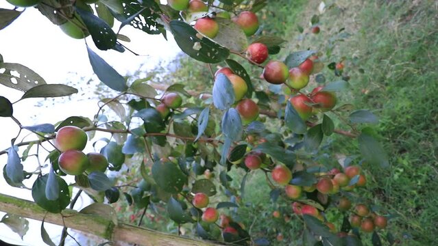 Red jujube fruits or apple kul boroi on a tree branch  in the garden