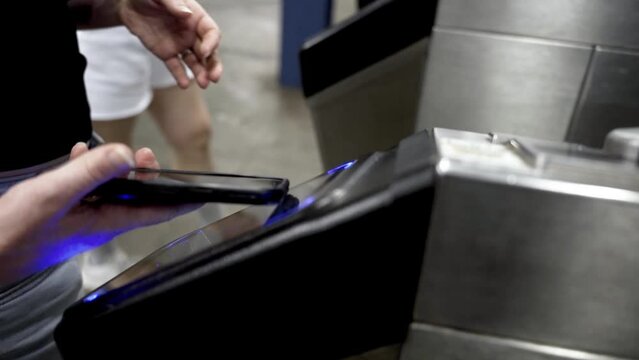 NFC Payment in Shanghai Metro. Hand Mobile Pay Subway Gate Entrance.