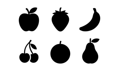 Fruit silhouette collection: apple, strawberry, banana, cherry, lemon, pear