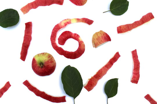 Apple peel lies on a white background.