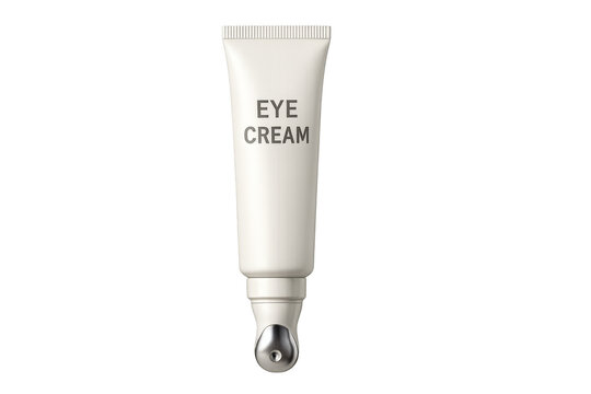 Eye cream tube with metal applicator on transparent background