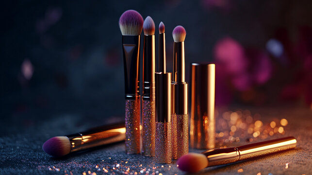 Sparkling Eyeshadow Palette with Silver Applicators in Jewel Tones Vibrant Still Life Makeup Photography
