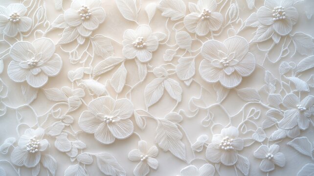 Elegant floral embroidery pattern with ivory flowers and leaves