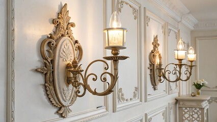 Wall sconces appliques light with shadow, cut out isolated on white background. AI GENERATED.
