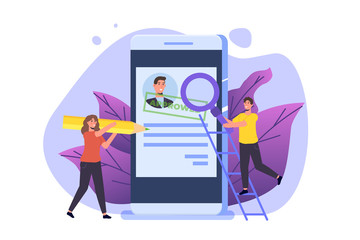 Cv concept resume with photo, documents. Employment recruitment. Searching professional staff. CV application. Selecting staff. illustration in flat design Raster version