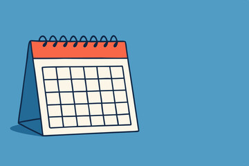 Minimalist hand-drawn desk calendar vector illustration, blank spiral-bound planner template for scheduling monthly events, organizing appointments, and setting reminders.
