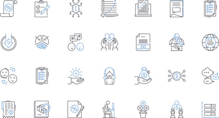Review inspection line icons collection. Analysis, Evaluation, Scrutiny, Critique, Appraisal, Examination, Assessment vector and linear illustration. Audit,Survey,Feedback outline signs set