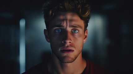 Expressive Portrait of a Young Person Displaying Shock or Worry