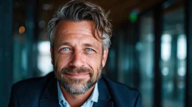 Confident businessman with a warm smile, exuding professionalism and approachability