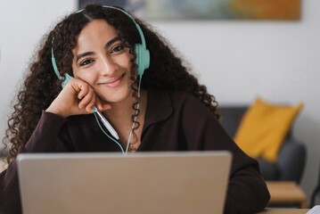 Friendly customer service representative with headset
