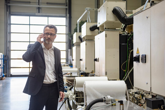 Portrait of businessman investor in spacious distribution warehouse, confidence and industry, wide view, high resolution