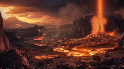 The red-hot lava spewing from the volcano demonstrates the destructive power of nature and the climate crisis, which is appropriate as a dramatic backdrop for documentaries about natural disasters.
