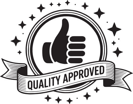 Quality Approved Badge – Certification, Guarantee, Thumbs Up Icon