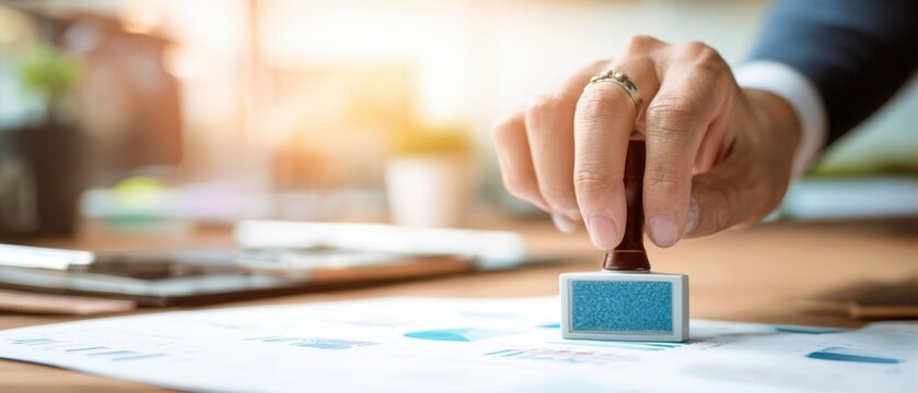 The Rubber Stamp Being Pressed on Business Documents by a Professional Hand
