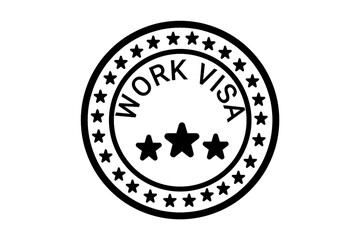 Black Round “Work Visa” Rubber Stamp Badge Vector Icon for Document or Travel Design