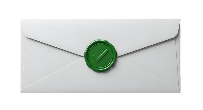 Approved white envelope with green wax seal and checkmark symbol