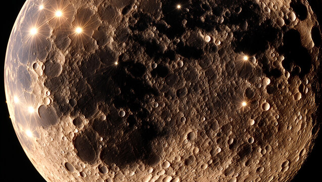 image generated by artificial intelligence representing the moon in detail showing the craters