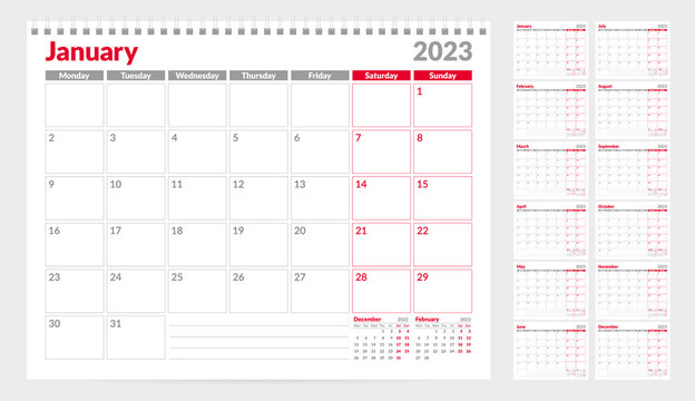 2023 table calendar week start on Sunday with color that use for vertical digital and printable