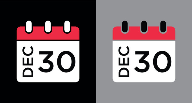 Important date and event on a black and white calendar. Cube date and month, day 30 April. Spring season.