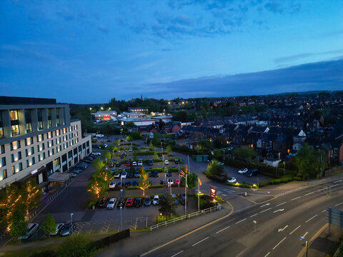 Aerial Night View of Illuminated Chesterfield City Centre, England United Kingdom. April 30th, 2024