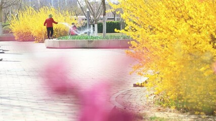 Wooden Blocks with Date 5 April. Floral Calendar – Vibrant Flowers on Solid Colored Background